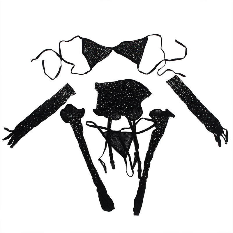 SUBBLIME - 952174 BODYSTOCKING DE REJILLA CON GUANTES Y DIAMANTES NEGRO TALLA ÚNICA
